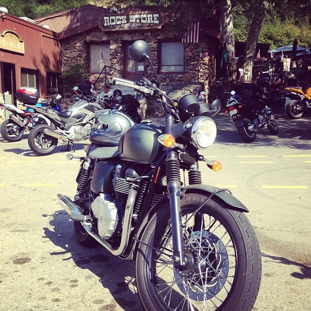 ECO-Triumph-1 @ericcolsen: There are a lot of awesome things happening in this picture. @triumphamerica, the rock store on Mulholland, biker chicks, and sunshine.