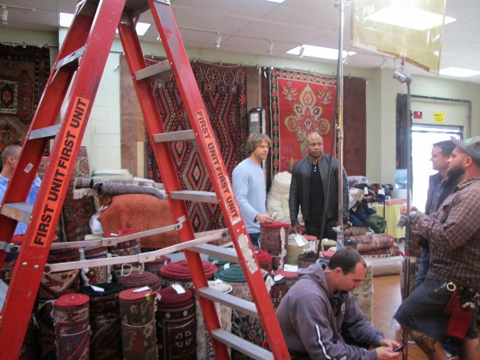 Eric Christian Olsen, LL Cool J and crew on location at Rug Ideas