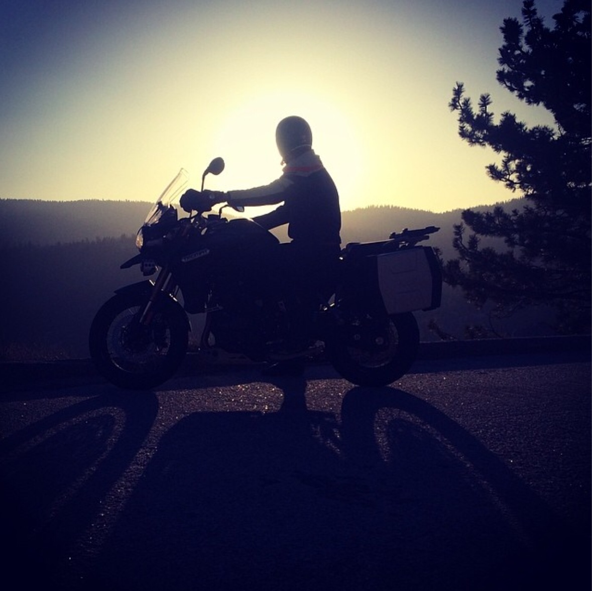 @ericcolsen:”Soon it got dusk, a grapy dusk, a purple dusk over tangerine groves and long melon fields; the sun the color of pressed grapes, slashed with burgandy red, the fields the color of love and Spanish mysteries” – Kerouac #prohibitiontour2014 #triumphamerica #icon1000