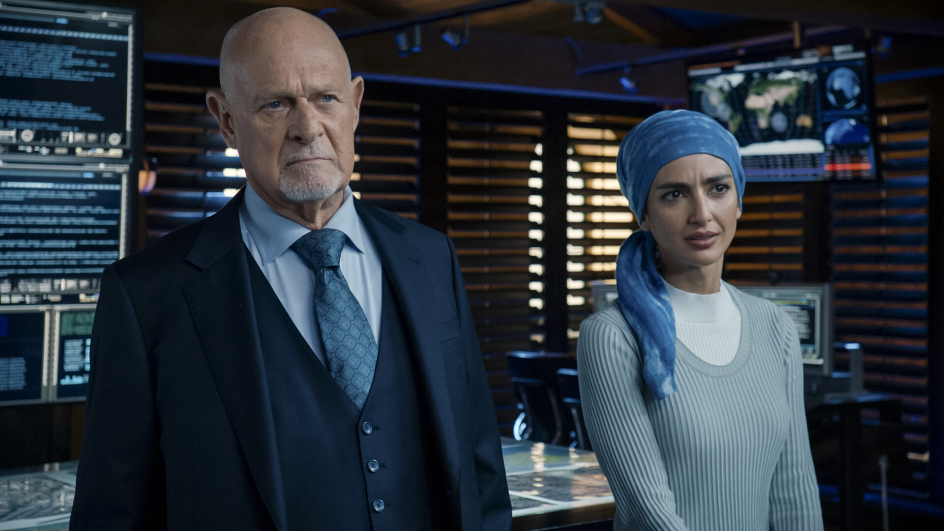 “Dead Stick” – When Aiden Hanna’s plane crashes and he is accused of being at fault for the accident, the NCIS team must investigate to clear his name. Also, Rountree considers how he wants to handle the aftermath of the incident with the LAPD and Sam finds a new caretaker for his father, on the CBS Original series NCIS: LOS ANGELES, Sunday, Oct. 30 (9:00-10:00 PM, ET/PT) on the CBS Television Network, and available to stream live and on demand on Paramount+. Pictured (L-R): Gerald McRaney(Retired Admiral Hollace Kilbride) and Medalion Rahimi (Special Agent Fatima Namazi). Photo: CBS ©2022 CBS Broadcasting, Inc. All Rights Reserved. Highest quality screengrab available.