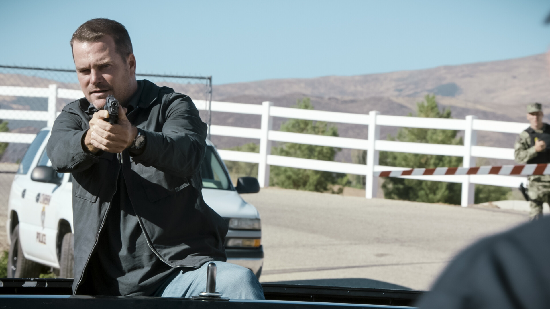 “Dead Stick” – When Aiden Hanna’s plane crashes and he is accused of being at fault for the accident, the NCIS team must investigate to clear his name. Also, Rountree considers how he wants to handle the aftermath of the incident with the LAPD and Sam finds a new caretaker for his father, on the CBS Original series NCIS: LOS ANGELES, Sunday, Oct. 30 (9:00-10:00 PM, ET/PT) on the CBS Television Network, and available to stream live and on demand on Paramount+. Pictured (L-R): Chris O'Donnell (Special Agent G. Callen). Photo: CBS ©2022 CBS Broadcasting, Inc. All Rights Reserved. Highest quality screengrab available.