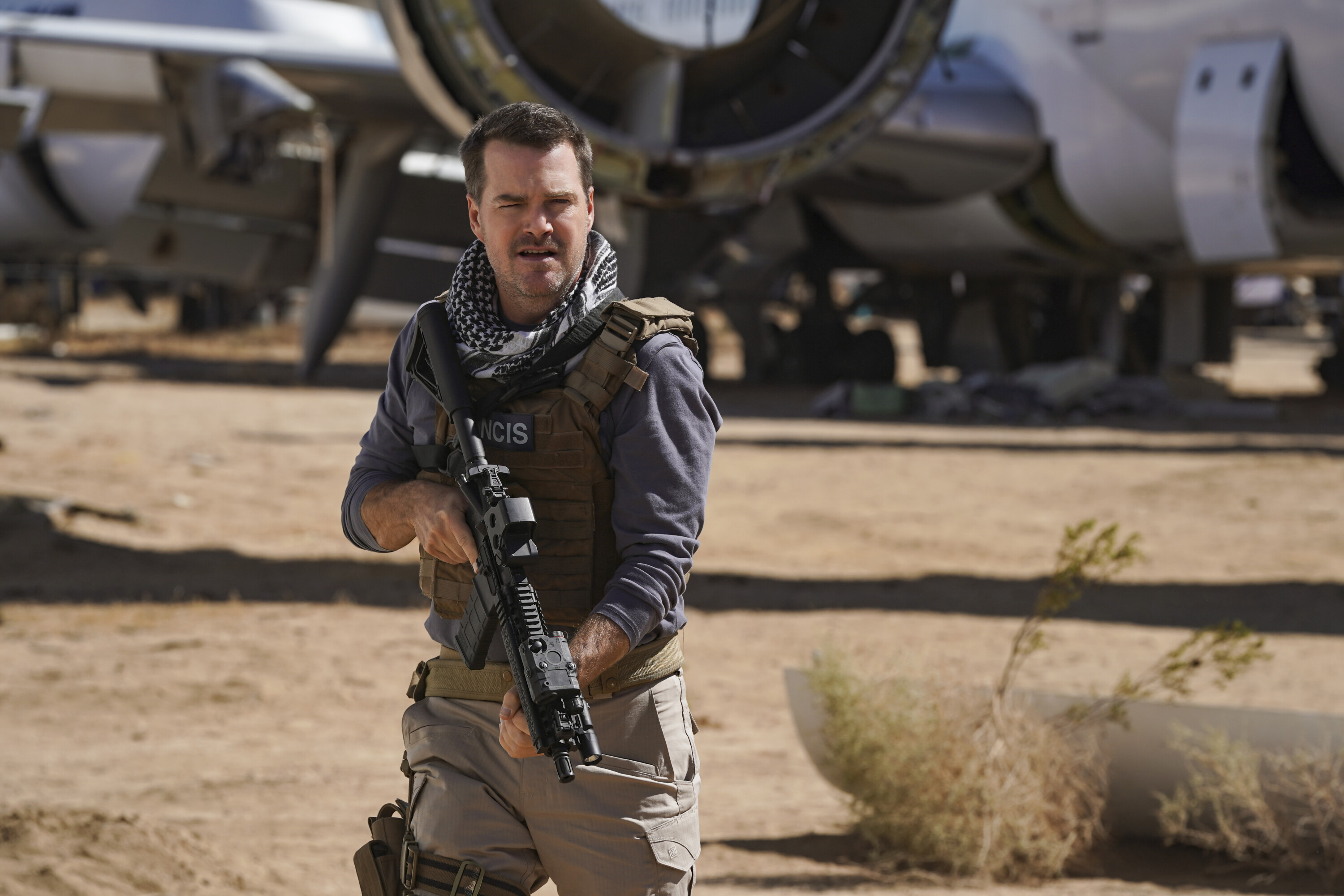 “A Long Time Coming” – Agents Rountree and Fatima are ambushed while searching for Kilbride, who has been MIA, and they learn that every member of the team has a hefty bounty on their head. The NCIS team must save Agent Rountree and find Kilbride while every cartel, hitman, gang and psychopath hunts them down, on the CBS Original series NCIS: LOS ANGELES, Monday, Jan. 9 (10:00-11:00 PM, ET/PT) on the CBS Television Network, and available to stream live and on demand on Paramount+. NCIS stars Gary Cole, Wilmer Valderrama and NCIS: HAWAI’I stars Vanessa Lachey and Yasmine Al-Bustami guest star in the episode, which is the conclusion to the three-episode crossover event with NCIS and NCIS: HAWAI’I. For the first time, NCIS, NCIS: HAWAI’I and NCIS: LOS ANGELES unite for a special three-hour NCIS crossover event for the hit CBS Original series on Monday, Jan. 9 (8:00-11:00 PM, ET/PT) on the CBS Television Network, and available to stream on Paramount. Pictured (L-R): Chris O'Donnell (Special Agent G. Callen). Photo: Michael Yarish/CBS ©2022 CBS Broadcasting, Inc. All Rights Reserved.