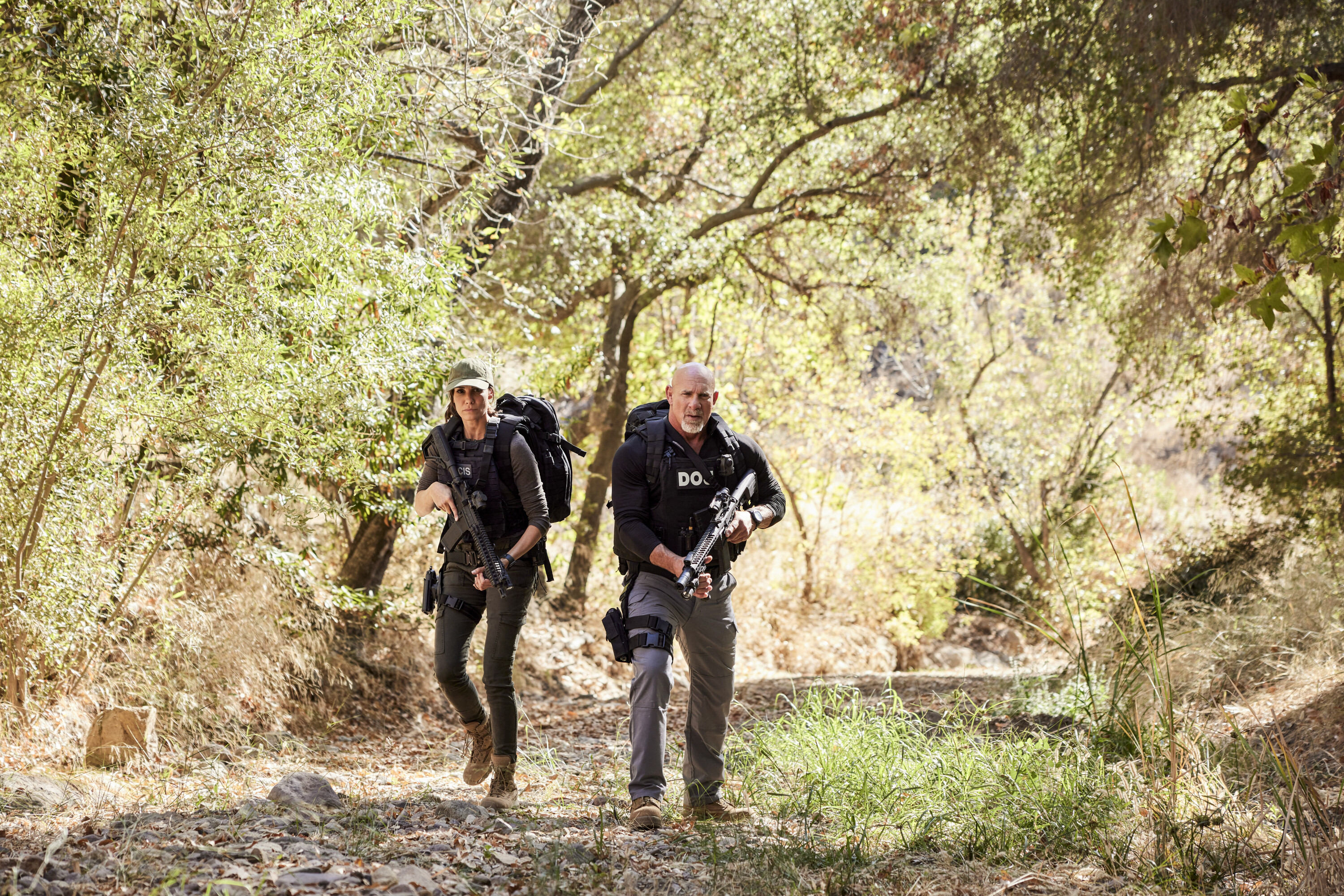 “Best Seller” – When Sam’s friend Tom Olsen finds himself being hunted down by enemies from his past, the NCIS team must find out who is after him, on the CBS Original series NCIS: LOS ANGELES, Sunday, Jan. 15 (9:00-10:00 PM, ET/PT) on the CBS Television Network, and available to stream live and on demand on Paramount+. Pictured (L-R): Daniela Ruah (Special Agent Kensi Blye) and Bill Goldberg (DOJ Agent Lance Hamilton). Photo: Sara Mally/CBS ©2022 CBS Broadcasting, Inc. All Rights Reserved.