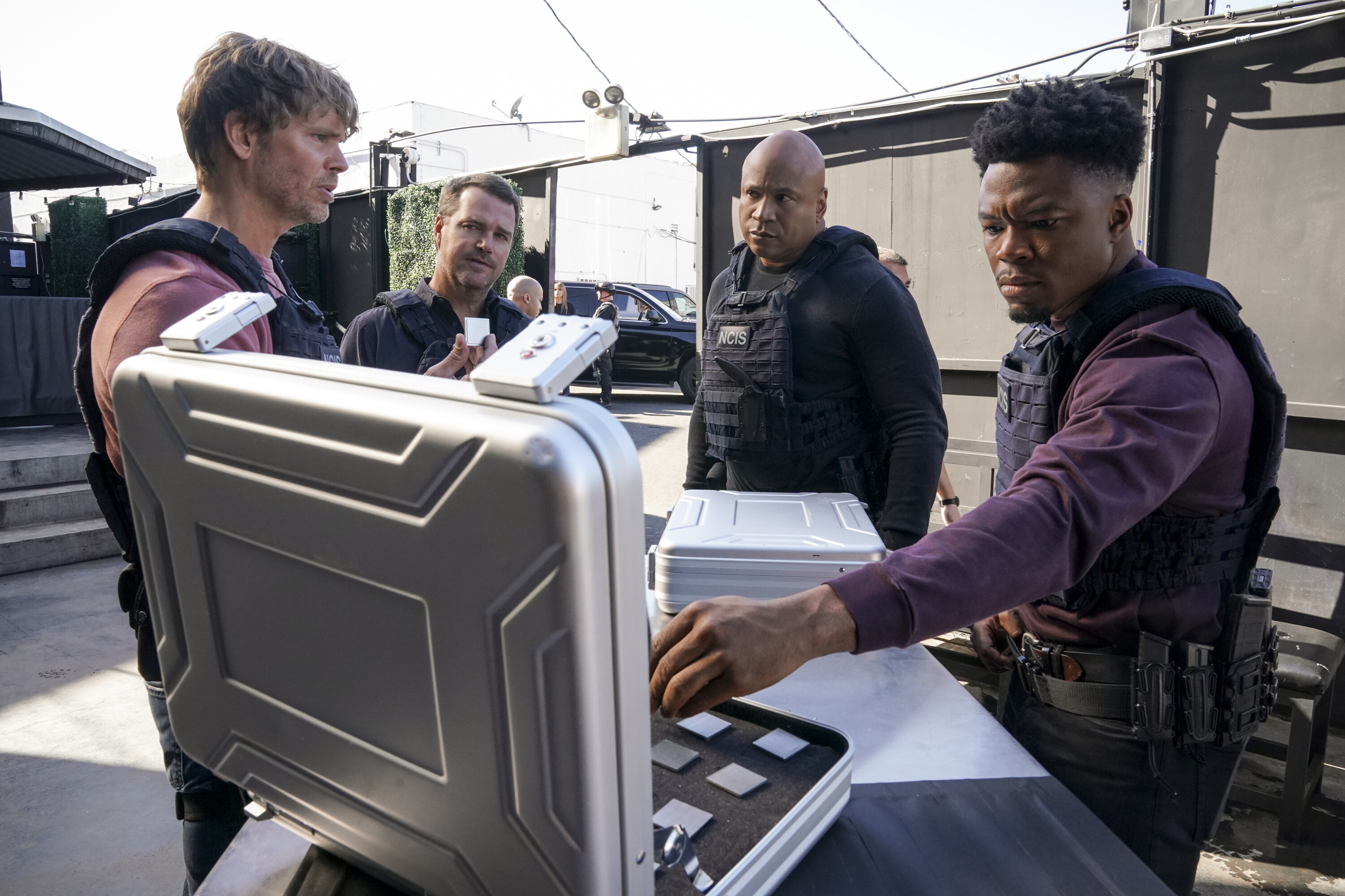 “A Farewell to Arms” – When a mystery woman attacks the founder of an AI company, the NCIS team must identify the woman before the next major global conflict ensues. Also, Kilbride’s ex-wife, Elizabeth (Marilu Henner), comes to visit and asks him to think about reconnecting with their son, on the CBS Original series NCIS: LOS ANGELES, Sunday, Feb. 26 (10:00-11:00 PM, ET/PT) on the CBS Television Network, and available to stream live and on demand on Paramount+. Pictured (L-R): Eric Christian Olsen (LAPD Liaison Marty Deeks), Chris O'Donnell (Special Agent G. Callen), LL COOL J (Special Agent Sam Hanna), and Caleb Castille (Special Agent Devin Rountree). Photo: Sonja Flemming/CBS ©2022 CBS Broadcasting, Inc. All Rights Reserved.