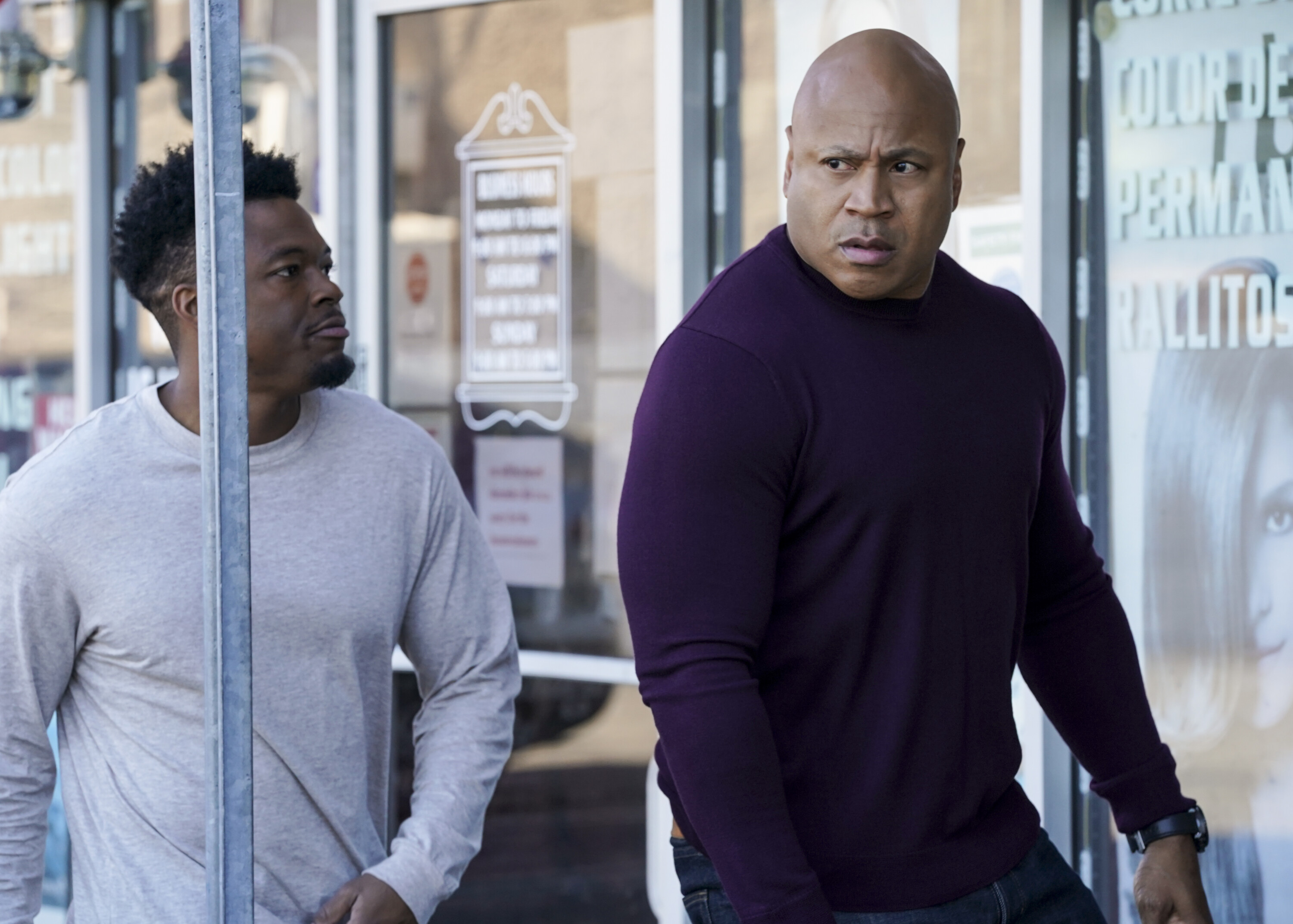“Shame” – When a petty officer is found dead with an apparent suicide note, the NCIS team must investigate the mystery surrounding his death. Also, Callen and Anna begin wedding planning and Sam has a heart to heart with his daughter, on the CBS Original series NCIS: LOS ANGELES, Sunday, March 5 (10:00-11:00 PM, ET/PT) on the CBS Television Network, and available to stream live and on demand on Paramount+. Pictured (L-R): Caleb Castille (Special Agent Devin Rountree) and LL COOL J (Special Agent Sam Hanna). Photo: Michael Yarish/CBS ©2022 CBS Broadcasting, Inc. All Rights Reserved.