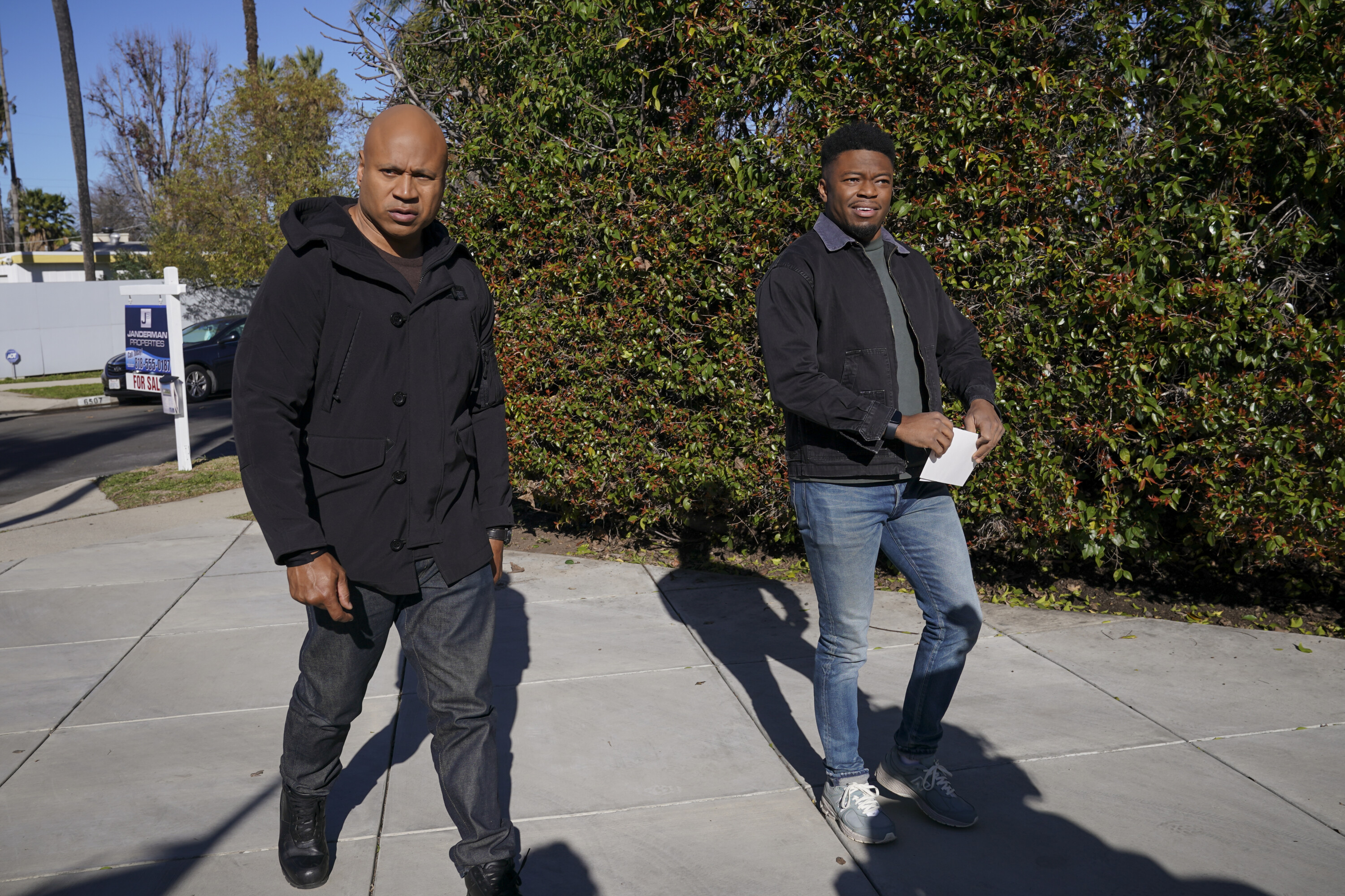 “Sensu Lato” – The NCIS team must investigate when a Navy reservist is stabbed and his lab full of pesticides and insects is ransacked. Also, Kilbride offers Sam the interim operations manager position and Rountree thinks about his future, on the CBS Original series NCIS: LOS ANGELES, Sunday, April 23 (10:00-11:00 PM, ET/PT) on the CBS Television Network, and available to stream live and on demand on Paramount+. Pictured (L-R): LL COOL J (Special Agent Sam Hanna) and Caleb Castille (Special Agent Devin Rountree). Photo: Sonja Flemming/CBS ©2023 CBS Broadcasting, Inc. All Rights Reserved.