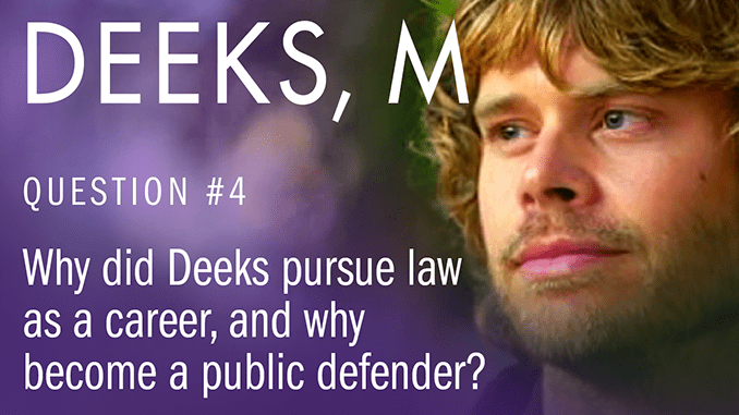 Question #5: Why did Deeks go from being a public defender to a police officer?
